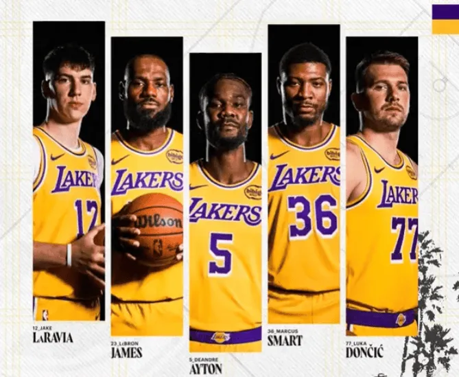 卢卡-东契奇、马库斯-斯马特、勒布朗-詹姆斯、杰克-拉拉维亚、德安德烈-艾顿。