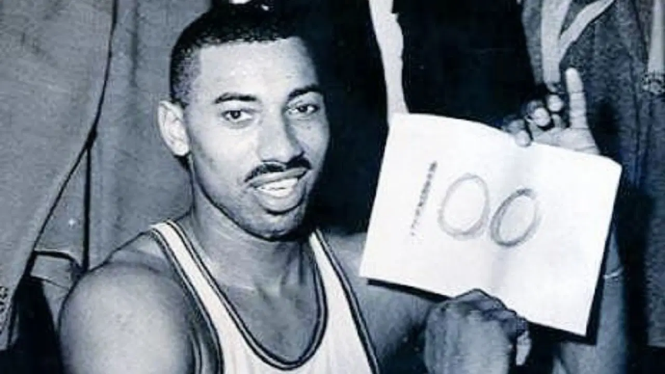 但重点是:他真的单场砍下了100分。在全世界最高水平的篮球联赛里。60多年过去,依旧无人能接近这个分数。
